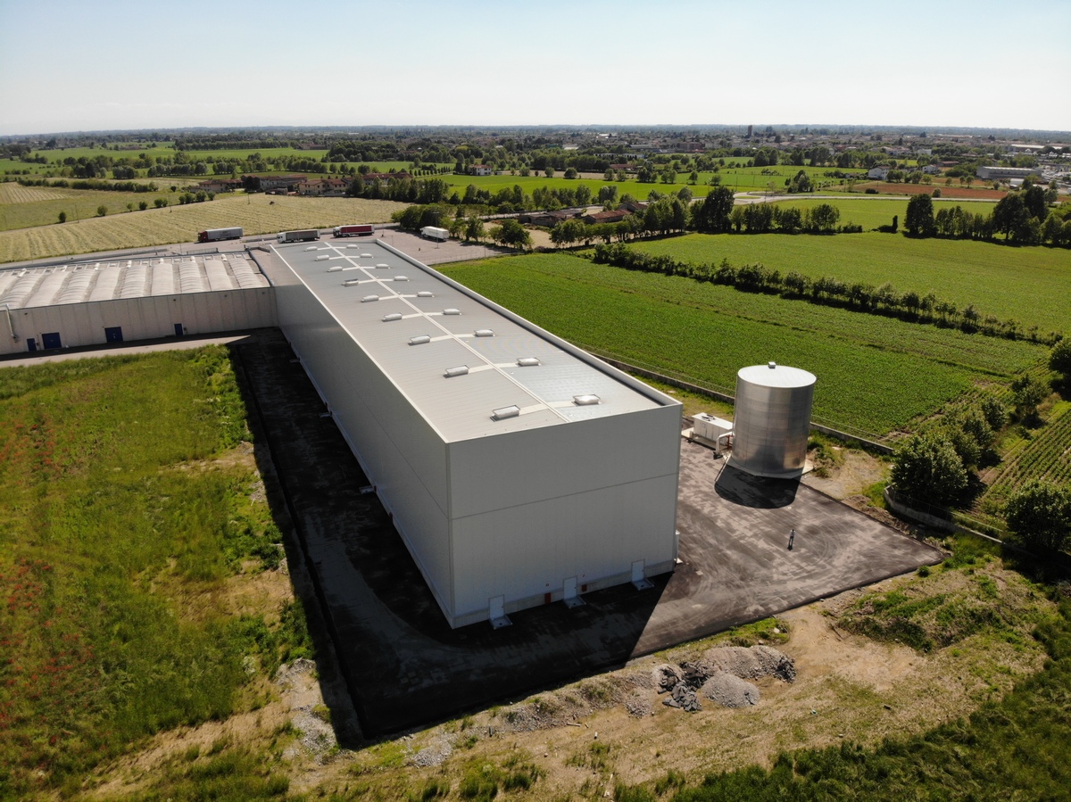 DESCRIZIONE: Nuova costruzione di magazzino automatico con scaffalature autoportanti per stoccaggio e movimentazione di prodotti. La struttura può contenere più di 4.000 pallet di prodotto. I procedimenti di carico/scarico materiale sono completamente automatizzati.